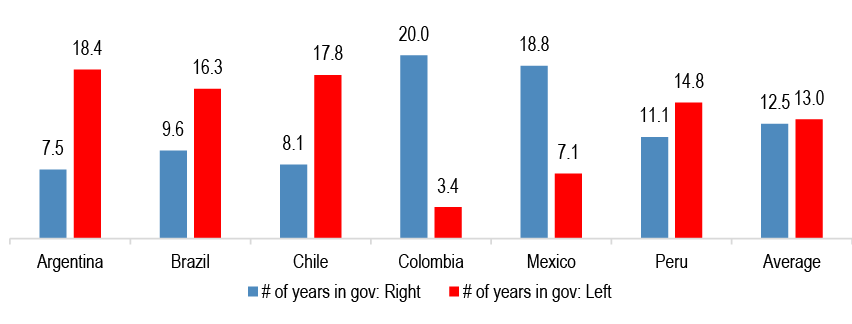 A análise do banco mapeou dez países da região desde o ano 2000. O veredito é que o placar atual de governos de direita retornou aos níveis vistos entre 2016 e 2022. Na prática, isso significa que a região volta a ter uma maioria de administrações conservadoras ou liberais.