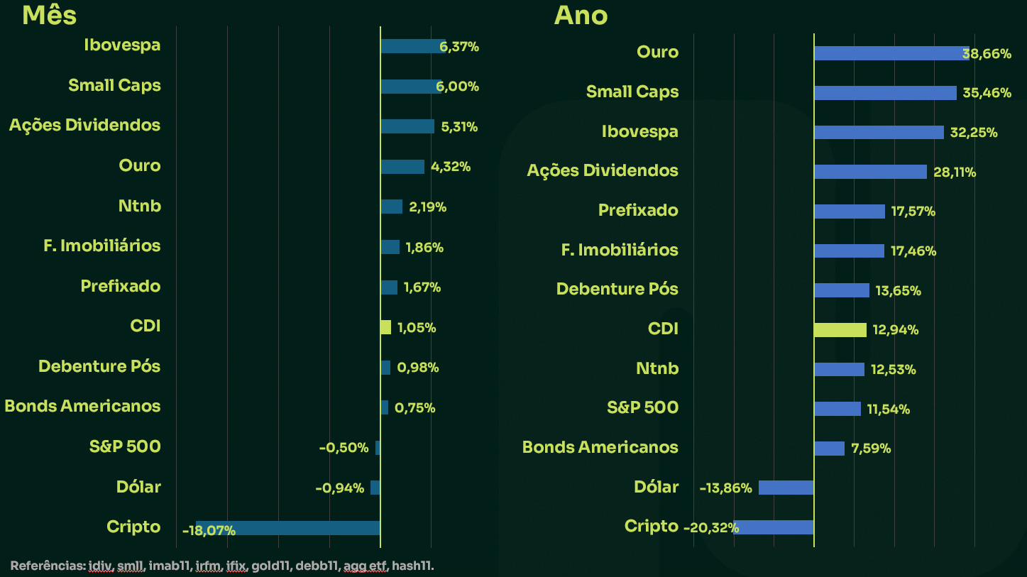 Bolsa lidera em novembro e só perde para o Ouro em 2025