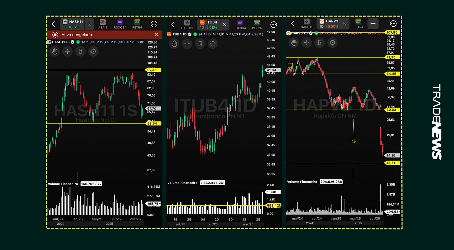 O Hashdax Nasdaq sustenta um cenário positivo enquanto permanece acima das faixas de R$ 55,00 a R$ 58,00 por cota. A avaliação segue alinhada ao repique do Bitcoin, que voltou a respeitar um suporte importante no gráfico mensal. Borges projeta avanço da criptomoeda para a zona entre US$ 100 mil e US$ 105 mil nas próximas semanas e estima que o Ethereum pode sair dos atuais US$ 3.000 para níveis de até US$ 3.500. Ele afirma que “Bitcoin e Ethereum respondem por quase toda a composição relevante do índice, e isso reforça a leitura de oportunidade no curto prazo”, com possibilidade de movimentos até a região de R$ 90,00.