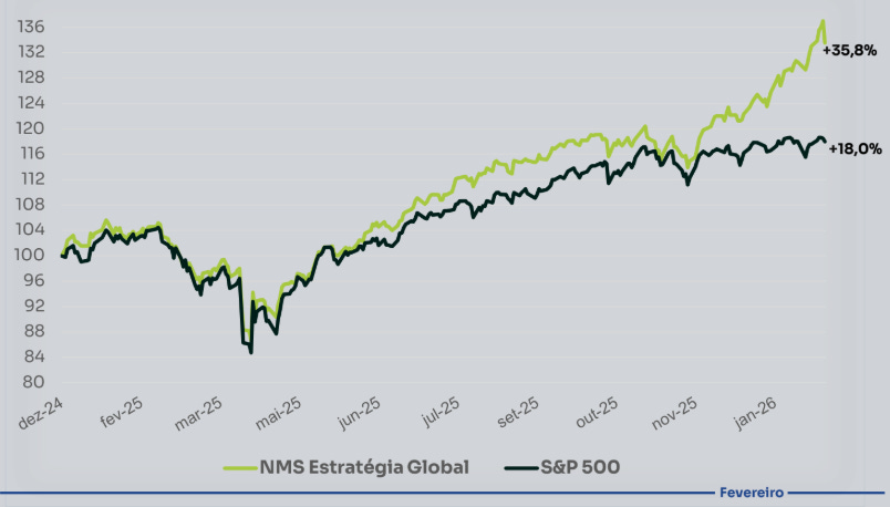 A Estratégia Global da NMS Research é desenhada para investidores de perfil moderado a agressivo que buscam crescimento e diversificação no mercado americano. Composta por uma seleção de 15 a 20 ativos entre ações, ETFs e ADRs, a carteira foca no equilíbrio entre risco e retorno para horizontes de médio e longo prazo.