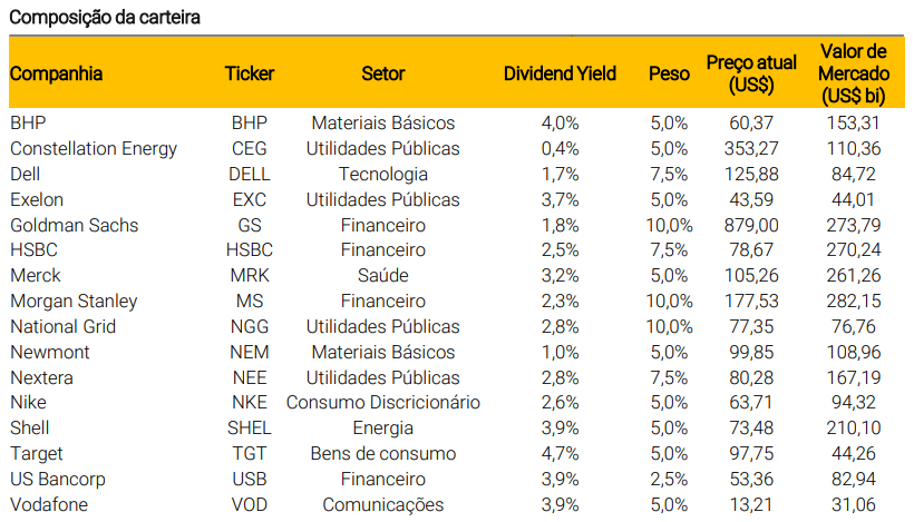 A XP manteve inalterada a carteira Top Dividendos Globais para janeiro de 2026, após um mês de desempenho positivo. Em dezembro, a estratégia avançou 2,6%, superando em 316 pontos-base o iShares Select Dividend ETF, que recuou no período. A avaliação é de que os fundamentos seguem sólidos para o início do ano.