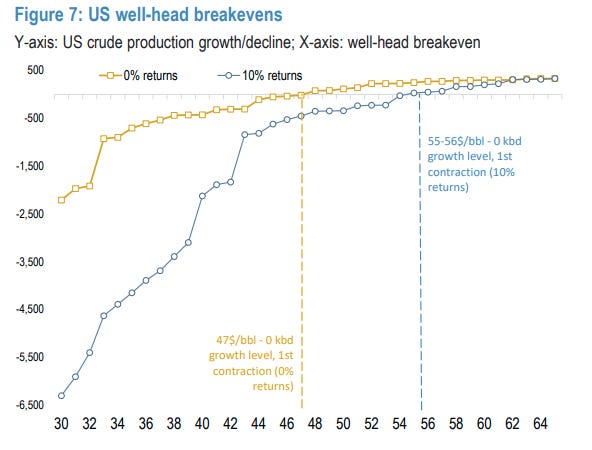 Com custo marginal perto de US$ 42/barril, o país fica exposto quando Brent opera abaixo de US$ 45. Isso pode levar a shut-ins e redução da oferta.