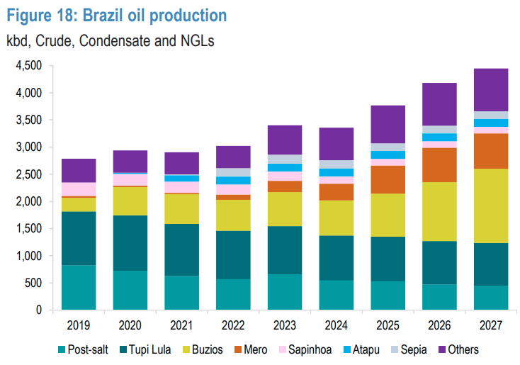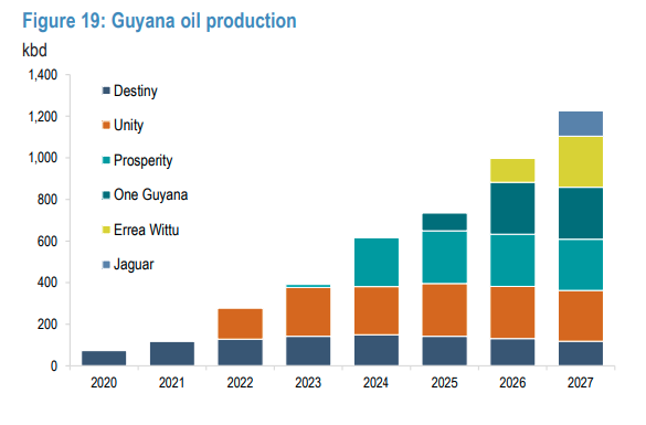 O banco vê a oferta do país crescendo 200 mil barris/dia por ano até 2027.