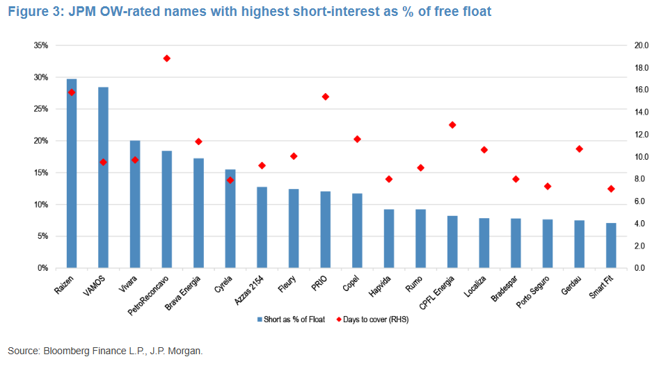 O JP Morgan utilizou duas métricas cruciais para mapear o potencial de short squeezes no Ibovespa: