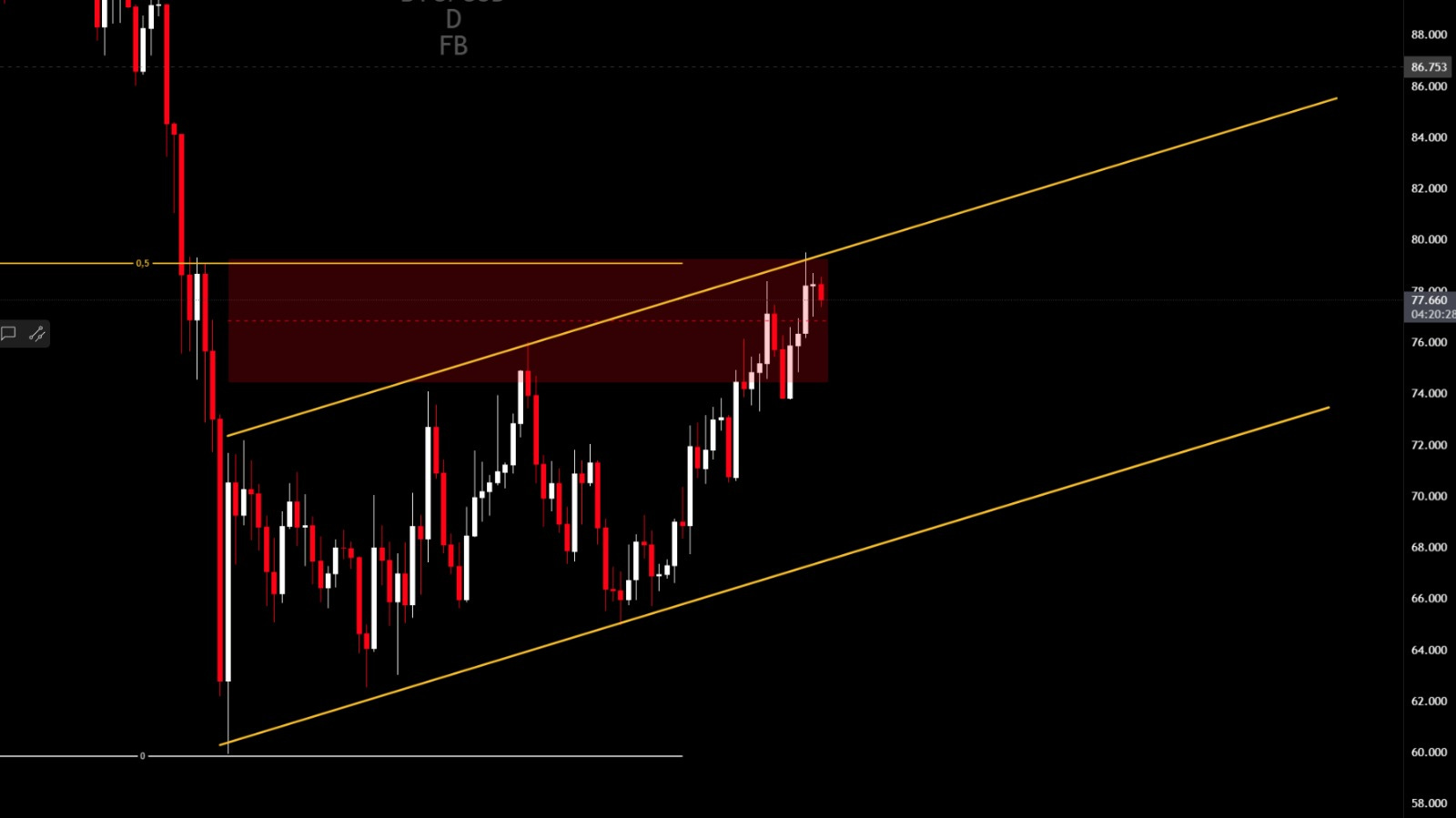 O Bitcoin se mantém na parte superior de um canal de alta, mas apresenta sinais de perda de força no curto prazo. Borges avalia que há espaço para consolidação ou correção, com possíveis recuos para a faixa entre US$ 68 mil e US$ 69 mil. “O ativo não conseguiu sustentar a tentativa de rompimento dos US$ 81 mil e US$ 82 mil e passou a respeitar um canal corretivo”, afirma. Para o analista, o cenário atual reduz a atratividade para novas compras. “Não vejo oportunidade de entrada neste momento; quem comprou em níveis mais baixos pode considerar realizar parte dos lucros ou retirar o capital investido”, diz.