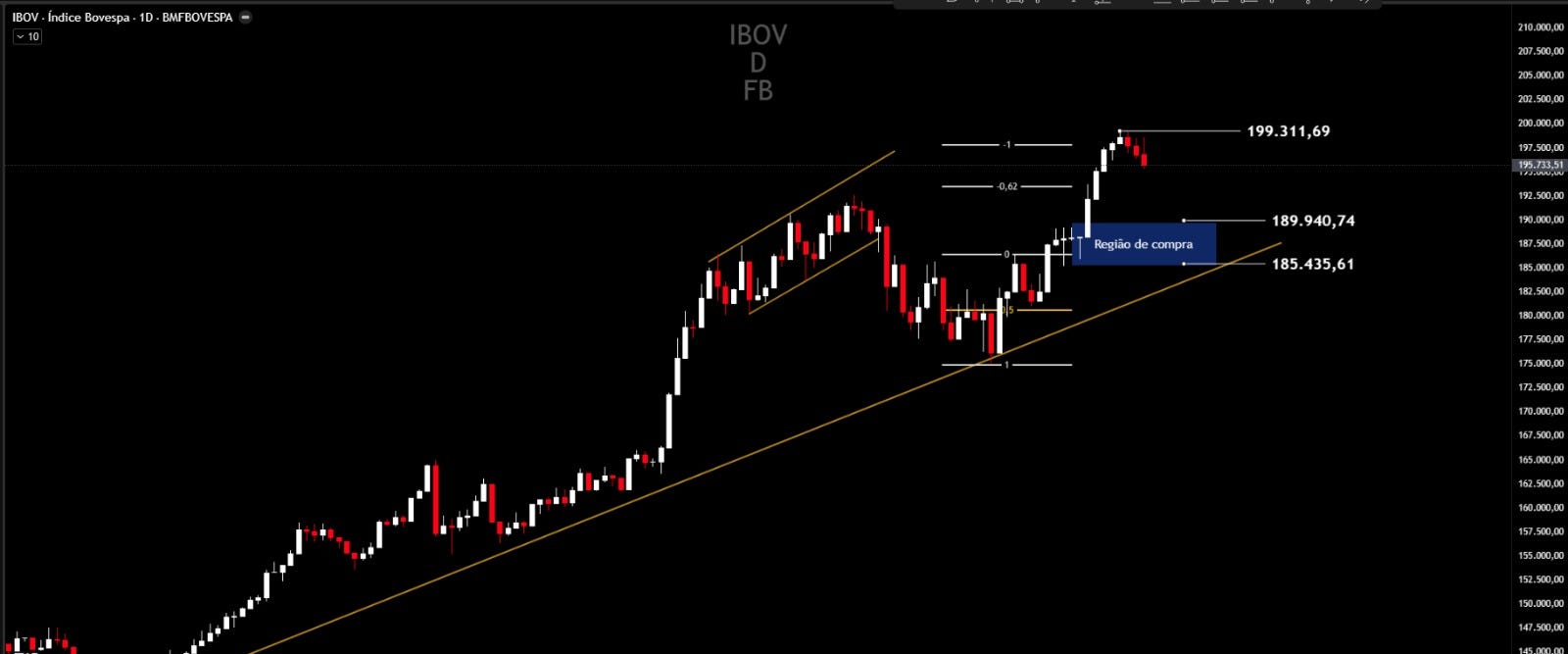 O Ibovespa fechou em queda nesta sessão, pressionado principalmente pelas ações da Petrobras, após o recuo do petróleo no mercado internacional com o anúncio de reabertura do Estreito de Ormuz pelo Irã. Segundo Filipe Borges, analista técnico da NMS Research, o movimento reforça um sinal de esgotamento no curto prazo. “O índice mostra um fechamento pesado e sinaliza um possível topo na região dos 199.300 pontos”, afirmou. Ele avalia que o mercado deve adiar uma tentativa de romper os 200 mil pontos e abrir espaço para correção. “Vejo margem para o Ibovespa recuar entre 190 mil e 185.500 pontos nas próximas sessões”, disse.