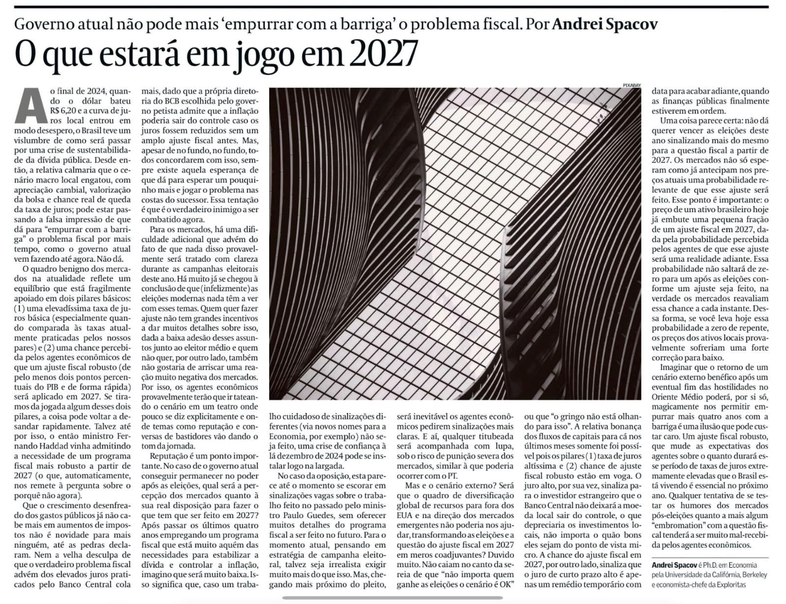 Nos Estados Unidos, o Federal Reserve adotou postura de espera após o choque nos preços de energia, interrompendo a perspectiva de cortes de juros no curto prazo. No Brasil, diretores do Banco Central sinalizaram preocupação com a deterioração das expectativas de inflação para 2028, o que pode limitar o espaço para quedas mais intensas da Selic.