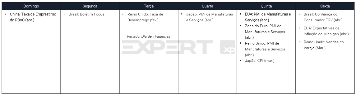Agenda da semana (20 a 24 de abril)
